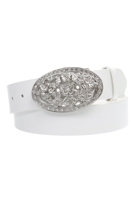 Western Antiqued Silver Sunflower Filigree Rhinestones Oval Belt