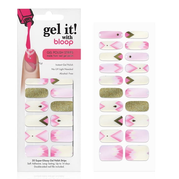 Bloop fully cured Real Gel Nail Polish Strips, Crystal Heaven Pink, No UV/LED lamp needed, Gloss finish, Adhesive nail stickers, No mess, No drying time, Handmade, Alcohol free, Peels off, 20 strips