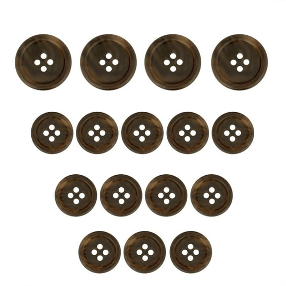 ButtonMode Regular Suit Buttons 16pc Set includes 4 Buttons measuring 20mm (3/4 Inch) for Jacket Front, 12 Buttons measuring 15mm (9/16 Inch) for Jacket Sleeves and Pants, Brown Medium, 16-Buttons