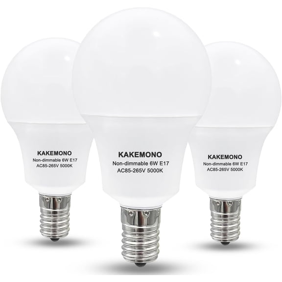 E17 Intermediate Base 6W LED Bulbs, 60watts Halon Equivt, Non-Dimmable R14 Ceiling Fan Light Bulbs, Daylight White 5000K,Pack of 3