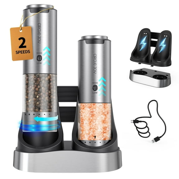 current price $33.24CIRCLE JOY Rechargeable Electric Salt and Pepper Grinder Set with Charging Base
