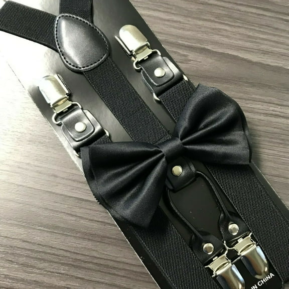 current price $15.87Black 4 Clip Suspender + Clip on Bow-Tie Matching Set for Adults Men Women