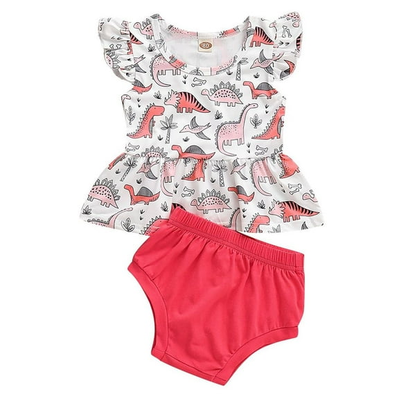 Available in additional 3 optionsBABY GIRL DINOSAUR SHORT FLUTTER SLEEVE DRESS