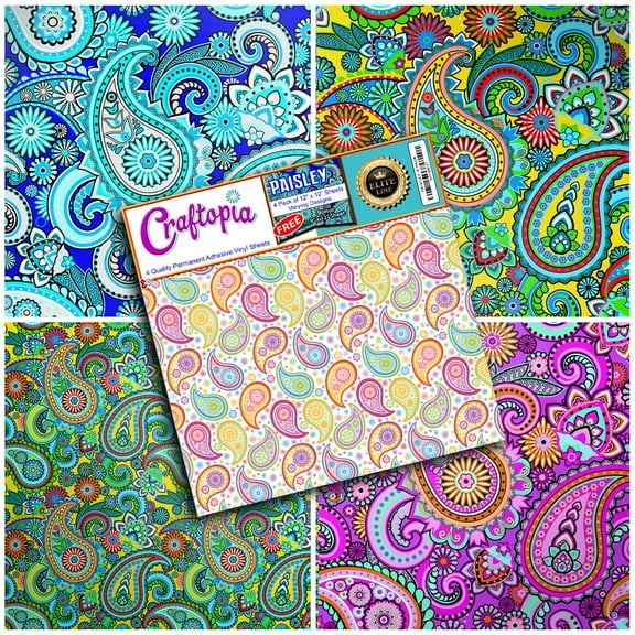 Craftopia's Paisley Pattern Self Adhesive Craft Vinyl Sheets | 4 Assorted Vinyl Pack