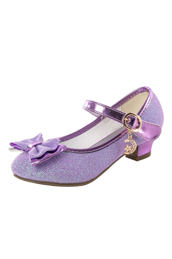 Children Dress Shoes Sparkle Princess Shoe Bowknot Mary Jane Anti-Slip Glitter Kids Casual Performance Purple 12C
