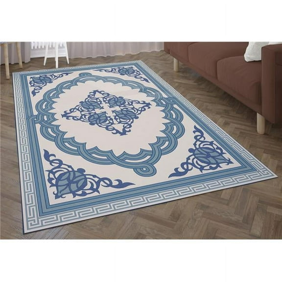 DEERLUX Deerlux Transitional Living Room Area Rug with Nonslip Backing, Blue Medallion Pattern, 8 x 10 ft Large