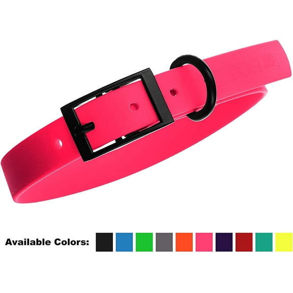 DogLine - Biothane Waterproof Dog Collar Strong Coated Nylon Webbing with Black Hardware Odor-Proof for Easy Care Clean High Performance Fits Small Medium Large Dogs(Neon Pink: L: 9" - 12" |W 1/2") From $9.99