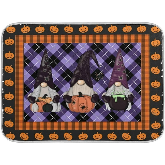 Halloween Dish Drying Mat for Kitchen Counter Halloween Gnomes Gingham Dry Dishes Mats 16 x 18 Inch Pumpkins Plaid Absorbent Microfiber Drainer Mat Dish Drying Pad for Countertops Decor
