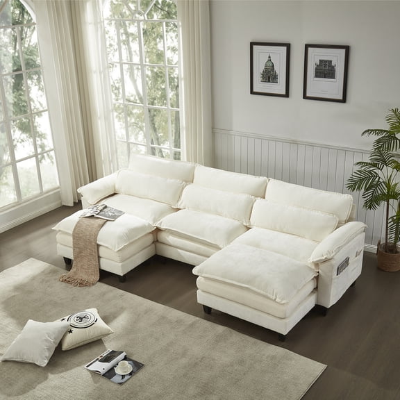 113'' Modular Sectional Sofa,U Shaped Couch with Movable Ottoman, Convertible Sectional Couches with Deep Seat, 3 Seat for Living Room Comfy Cloud Sofa with USB Side Pockets & Charging(Beige) From $319.99