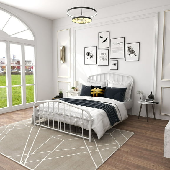 EvinTer Full Size Modern Design Platform Metal Bed Frame, White