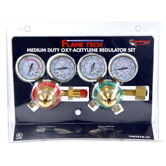 current price $99.99Flame Tech Oxy-Fuel Medium Duty Regulator Set, Solid Forged Brass, Easy-To-Turn Key Style, Set Of 1 Oxygen Regulator And Fuel Gas Regulator Each, Victor Compatible