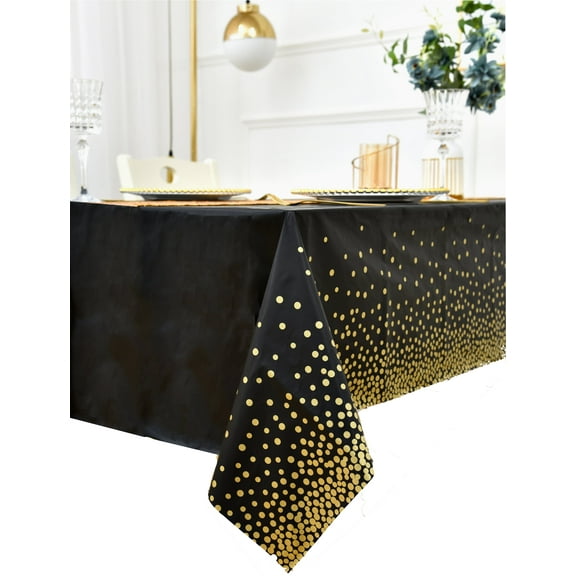 1-Pack Rectangular Plastic Tablecloth (54x108'') with Gold Dots, Disposable Waterproof Vinyl Table Covers for Decorating Parties Thanksgiving Christmas, Bridal&Baby Showers, Wedding&Birthday From $8.99