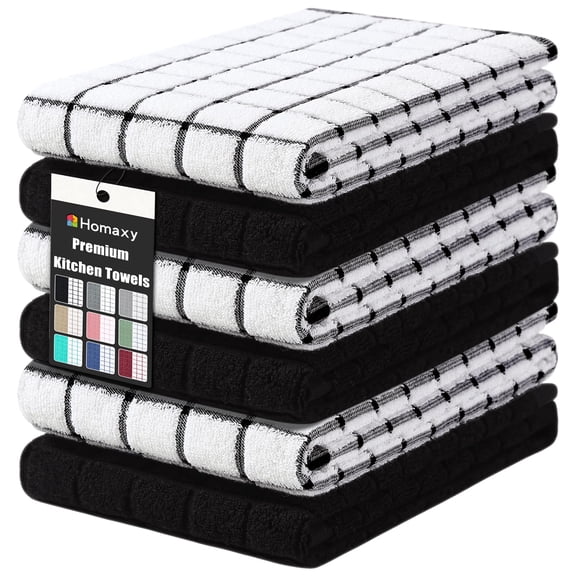 current price $64.95Homaxy Premium Cotton Kitchen Towels 16"x 28", Large Ring Spun 390 GSM Dish Towels, Super Absorbent Terry Kitchen Hand Towels, Soft Tea Towels with Hanging Loop, Black Check Design, 6 Pack Y101