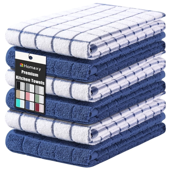 current price $72.48Homaxy Premium Cotton Kitchen Towels 16"x 28", Large Ring Spun 390 GSM Dish Towels, Super Absorbent Terry Kitchen Hand Towels, Soft Tea Towels with Hanging Loop, Navy Blue Check Design, 6 Pack Y101