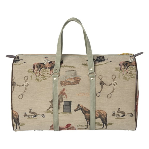 Available in additional 2 optionsHuntley Equestrian Western English Design Duffle Bag Patterned Cotton Center Zipper Reinforced Bottom