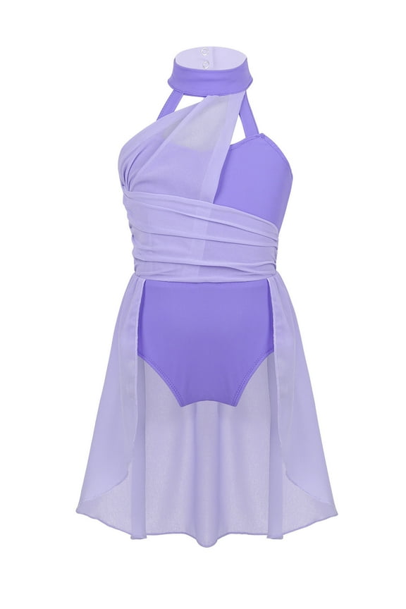 Womens Contemporary Lyrical Dance Wear Asymmetrical Hem Gymnastics Leotard Dress CostumeWomens V Neck Metallic Waistline Liturgical Praise Dance Dress Sleeveless Asymmetrical Modern Dance Show Costume Purple L