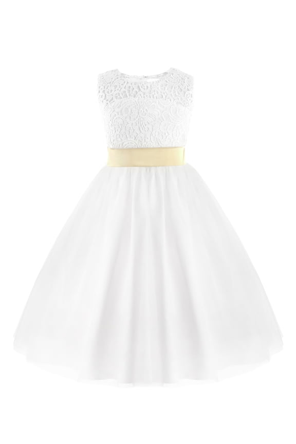 Girls Water-soluble Lace Flower Girl Dress Princess Pageant Wedding Bridesmaid Birthday Party Dress Ivory 6