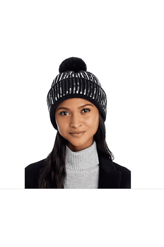 Faux Fur Pom Pom Sequin Knit HatFaux-Fur Knit Beanie W/ Pompom $50.00