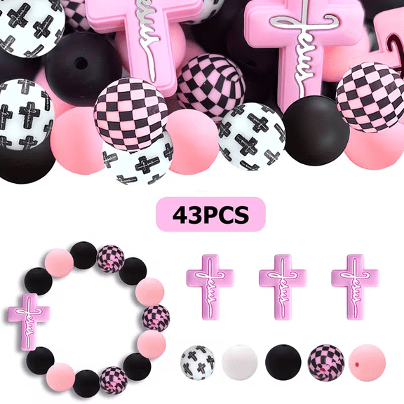 43 Pieces 6 Cross Silicone Cross Beads with 1 Rope Mixed Color Flat 36 Round Beads For DIY Crafts Jewelry Making Beaded Pens Phone Straps Bag Pendants $10.95