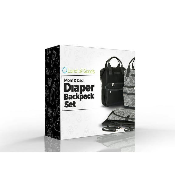 Mom and Dad Diaper Bag Backpack Set with Stroller Straps and 2 Changing Mats (Gift Box Included) $50.00