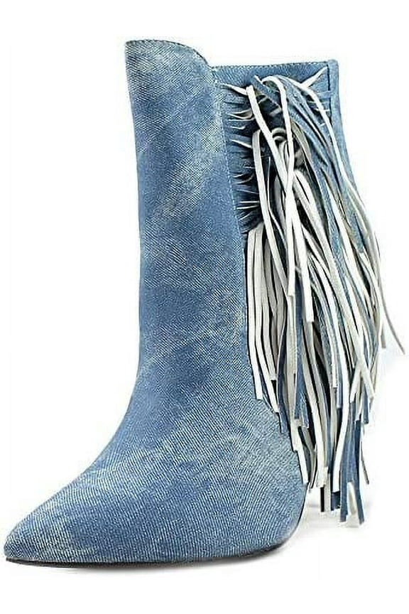 Going Fast Pointed Toe High Stiletto Distressed Denim Fringe Ankle Boot (5)Anna may IMI Suede Lug Sole Lace Up Combat Stacked heel Ankle Booties (Black, 8) Was $29.99