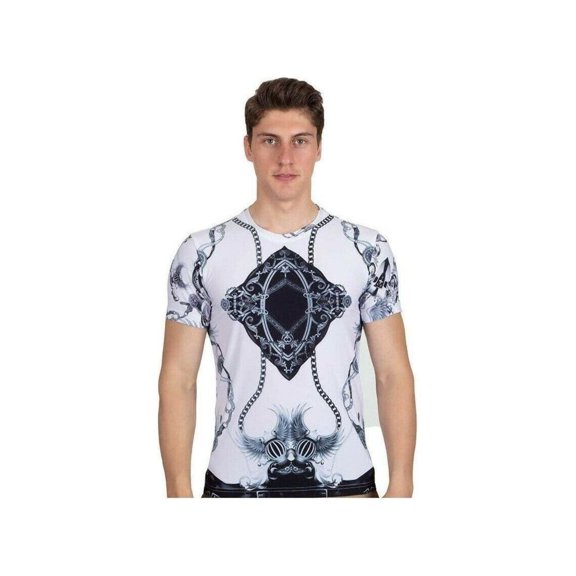 Men Crew T Shirt Makrom Turkey Medallion Chain Floral European 1217-420 White