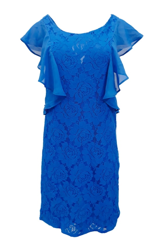 Black Floral Lace, Pleated, Sheath Dress, Women's 6Womens Ruffled Royal Blue Capped Shoulder Cross Back Floral Lace Dress