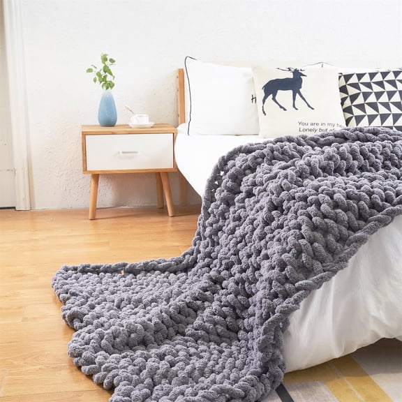 Modenna Chunky Knit Blanket Handmade Soft Warm Throws, 50"x60", Dark Gray