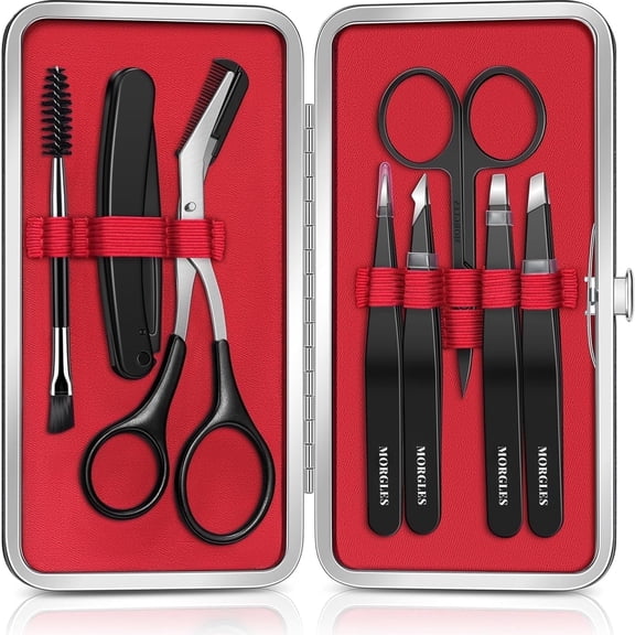 In 25+ people's carts MORGLES 7PCS Tweezers for Women Facial Hair, Precision Tweezer Set for Eyebrows with Curved Scissor and Eyebrow Razor for Ingrown Hair $8.55 Was $9.77
