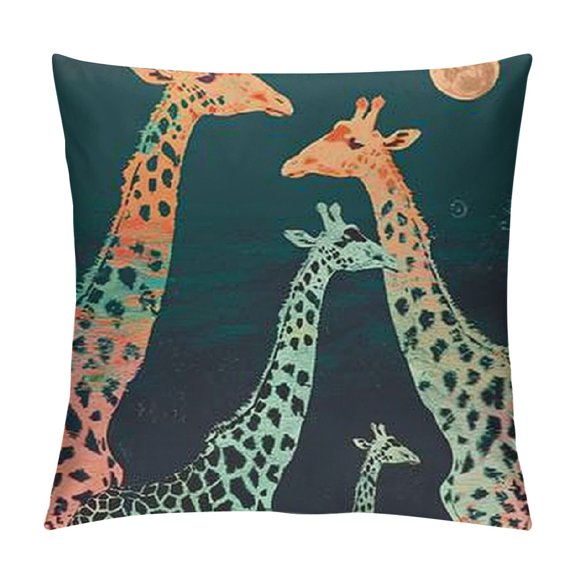 Available in additional 5 optionsThrow Pillow Cover Art Giraffe Group Blue Decorative Pillow Case Home Decor Inches Pillowcase