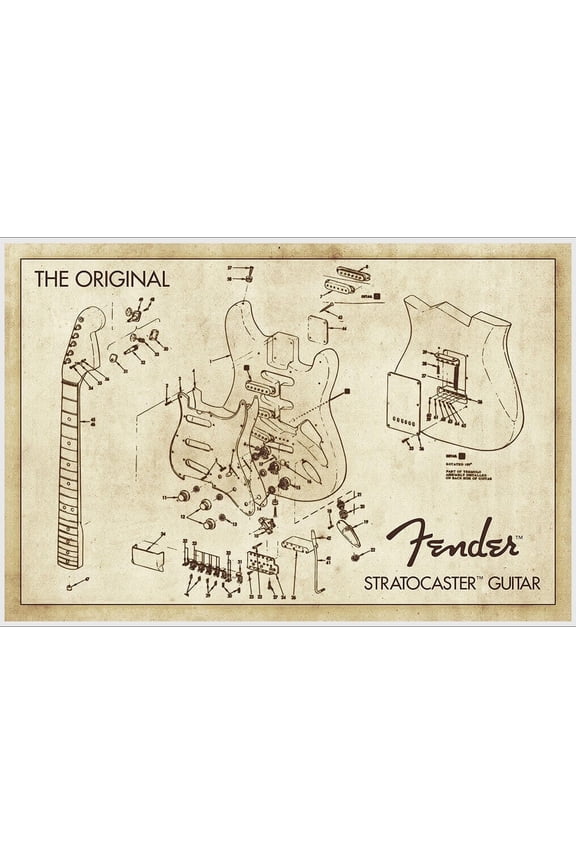Fender Stratocaster Guitar Diagram Poster 36.5" x 24.5" Laminated