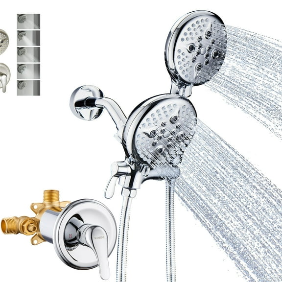 shower system with handheld, High Pressure 5-Spray Dual 2 In 1 Shower Faucet Set 3-Way Diverter Shower Valve and Trim Kit $79.99