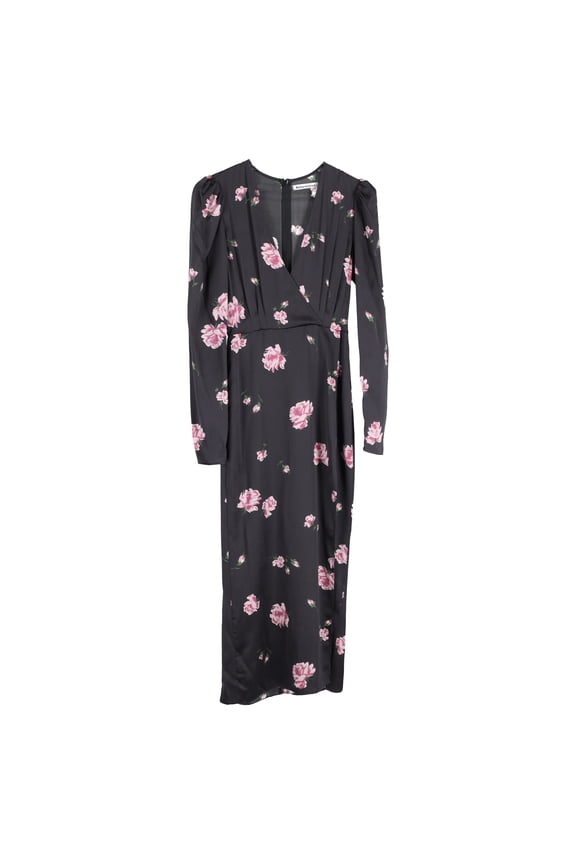Pre-Owned Reformation Toulouse Midi Dress in Floral Print LinenPre-Owned Reformation Floral Print Long Sleeve Midi Dress in Black Silk $111.00