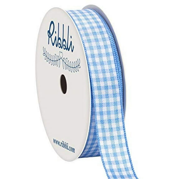Ribbli Light Blue and White Gingham Ribbon,100% Polyester Woven Edge,5/8 Inch x 10 Yard,Plaid Ribbon Use for Baby Shower,Gift Wrapping,Party Decoration