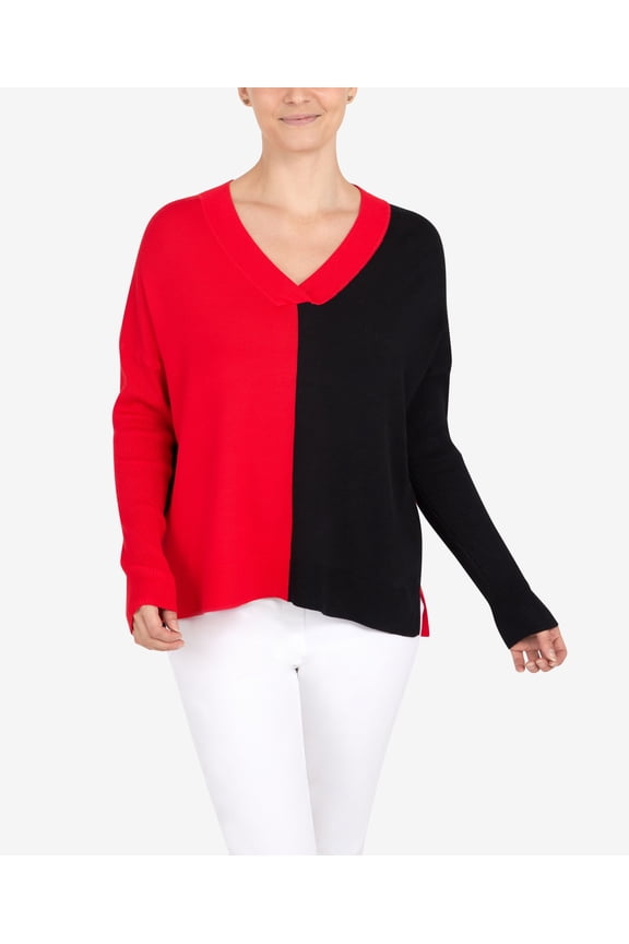 Petite Color Block V-Neck Sweater Lipstick Multi PMFall Open Cardigan Pointelle All Acrylic (US, Alpha, 3X, Plus, Regular, Plus Size, Chestnut)