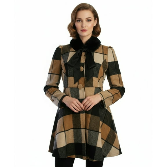 Ryu: Plaid Wool Jacket With Faux Fur Scarf, Camel