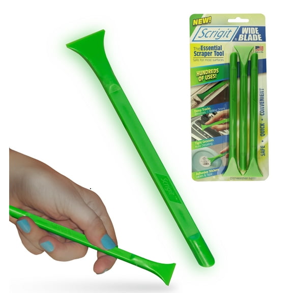 current price $17.99Scrigit Scraper: No-Scratch Plastic Tool, 3 Pack Wider - Multi-Use Tool for Removing Food, Labels, Stickers, Paint, Grease