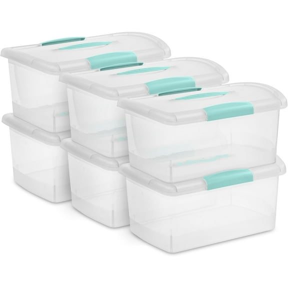 Sterilite 6 Pack Storage Bin with Latch Lid, Medium Nesting ShowOffs, Clear