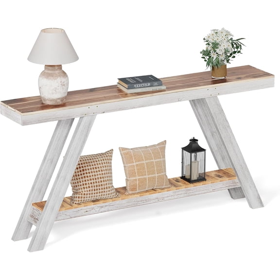 SMARTSTANDARD 60 Inch Farmhouse Console Entryway Table, Reclaimed Wood Console Table for Entrance, 2 Tiers Narrow Long Behind Sofa Table,Rustic Entry for Hallway, Living Room(White)