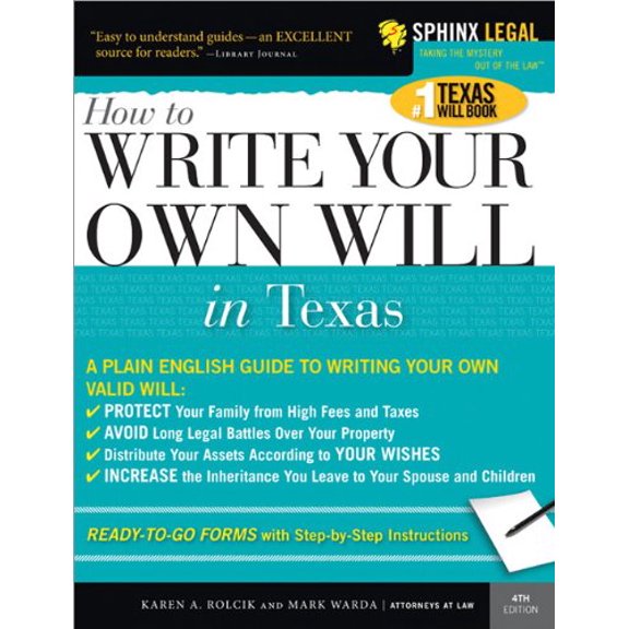 Pre-Owned How to Write Your Own Will in Texas (Legal Survival Guides) (Paperback) 1572485132 9781572485136 Was $13.80