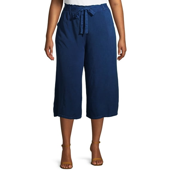 Studio West Women's Plus Size Soft Chambray Palazzo Pants