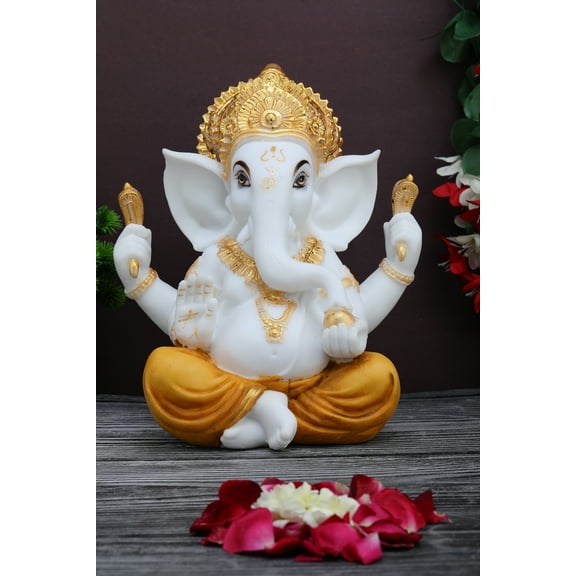 Sukoon Decorative Lord Ganesha Idol with Chakra Pure White, Polyresin Figurine, Ganpati Bappa Murti $249.99