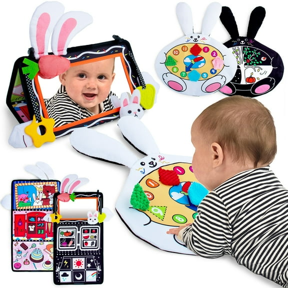 current price $17.99Baby Toys 0-6 Months, Tummy Time Baby Mirror Toys With Teethers Rabbit Play Mat Musical Toy, High Contrast Baby Toys for Newborn Infant, Baby Brain Development Sensory Toy, Numbers, Shapes & Textures