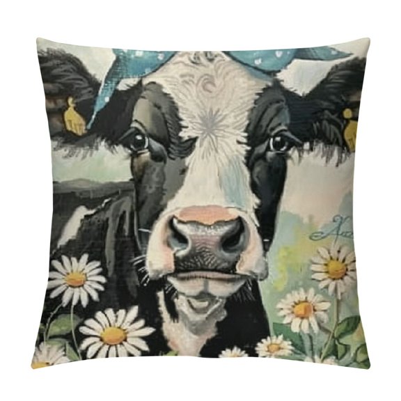 Available in additional 5 optionsSpring Summer Cow Pig Decorative Throw Pillow Covers Sweet Farm Daisy Flower Blue Truck Cushion Case Decor, Bless Our Home Eucalyptus Leaves Farmhouse Decoration for Sofa Couch