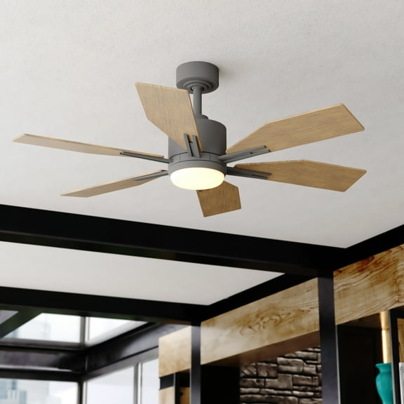 current price $679.99Vaxcel Burlington 68-in. Large Slate Gray Farmhouse Windmill Indoor Outdoor Ceiling Fan with DC Motor, Integrated LED Light Kit and Remote
