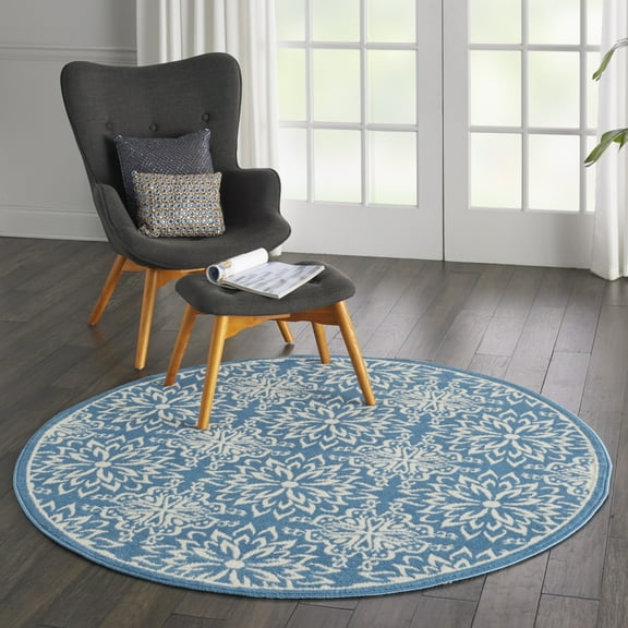 Walmart Bliss Modern Floral Ivory/Blue 5'3" x Round Area Rug, (5' Round)