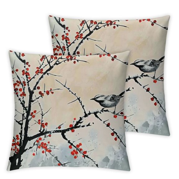 Available in additional 3 optionsWinter Birds Cherry Blossom Throw Pillow Covers Sparrow Japanese Flower Square Pillow Cases for Decorative Cushion Bed Couch Sofa Pink