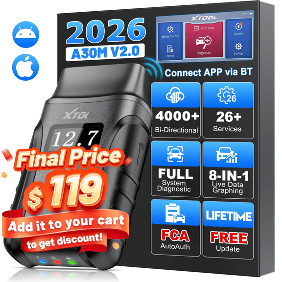 current price $192.56Xtool A30M Wireless OBD2 Scanner with Full System Diagnostics, Bi-Directional Controls, and 21+ Maintenance Functions