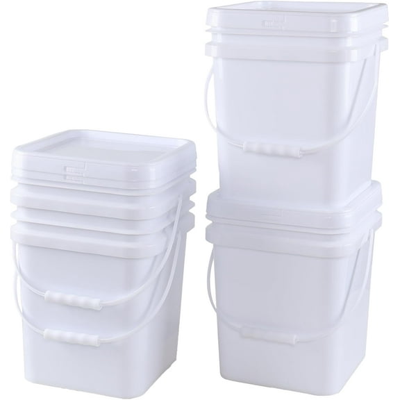 G3C9928LZerdyne 4 Pcs 3 Gallon Plastic Square Bucket Pail Container with Lid, White Bucket Food Grade Square Bucket with Plastic Handle $59.28