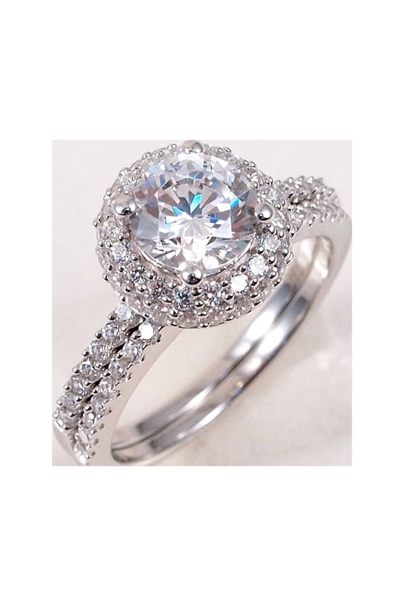 1ct Engagement Wedding Set 2 RINGS Signity CZ Rhodium over Sterling Silver (8)1.5ct Engagement Wedding Set 2 RINGS Signity CZ Pave/Prong Set Sterling Silver (Size: 5) From $35.00